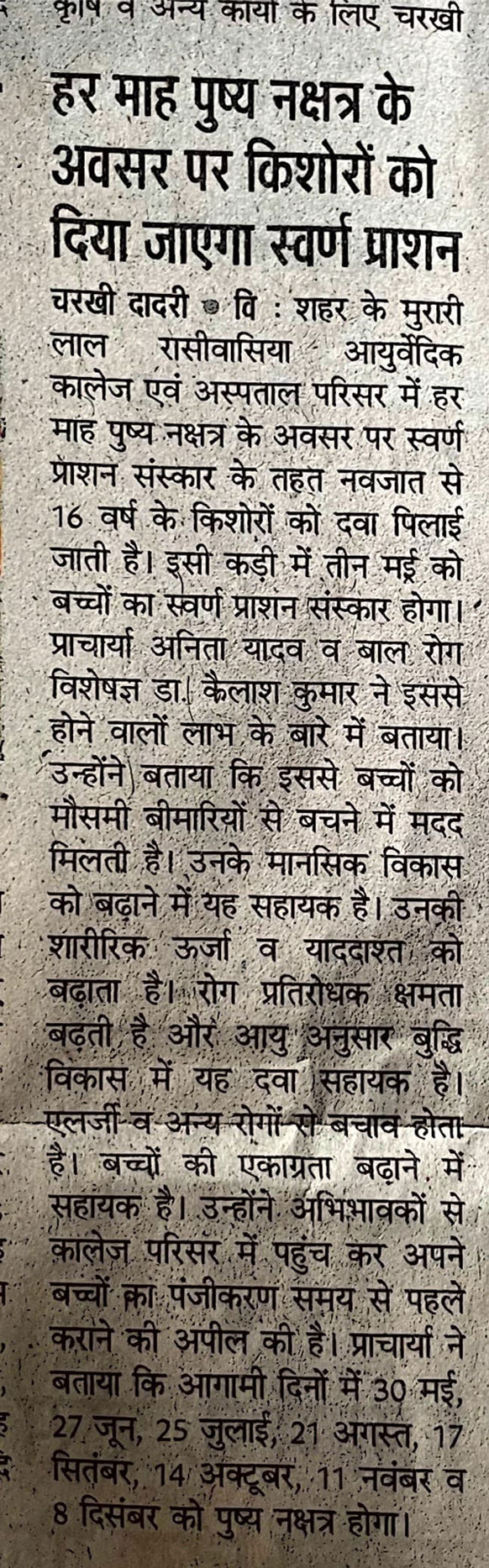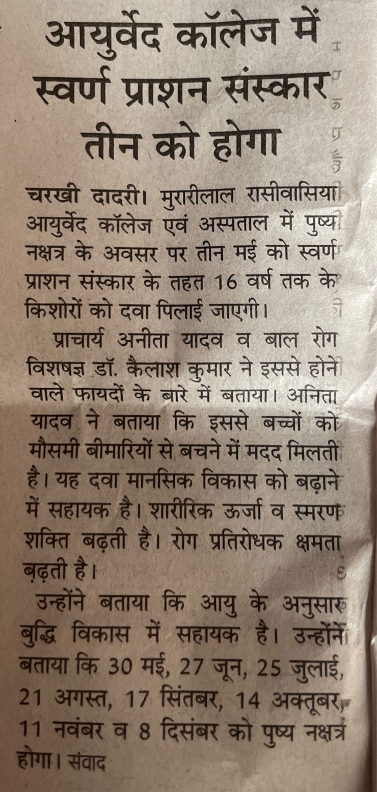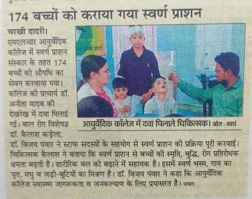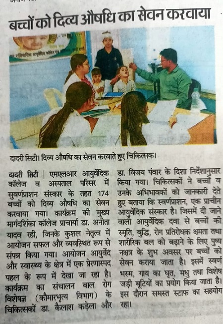 SWARNPRASHAN ORGNISED BY M.L.R AYURVEDIC COLLEGE AND HOSPITAL
