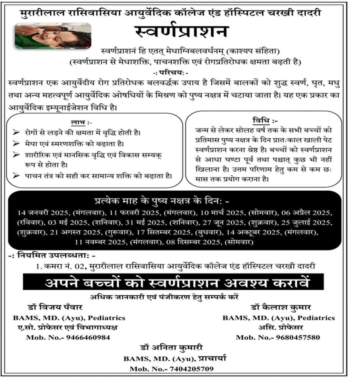 BE READY FOR SWARNPRASHAN EVERY MONTH ON PUSHYA NAKSHATRA